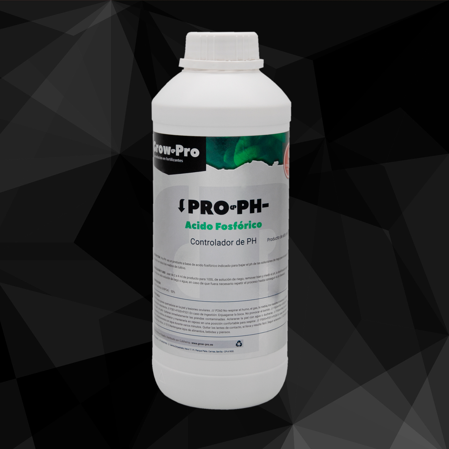 Pro-PH- es un producto a base de acido fosfórico indicado para bajar el pH de las soluciones de riego para la etapa de crecimiento y floración en todos los medios de cultivo.